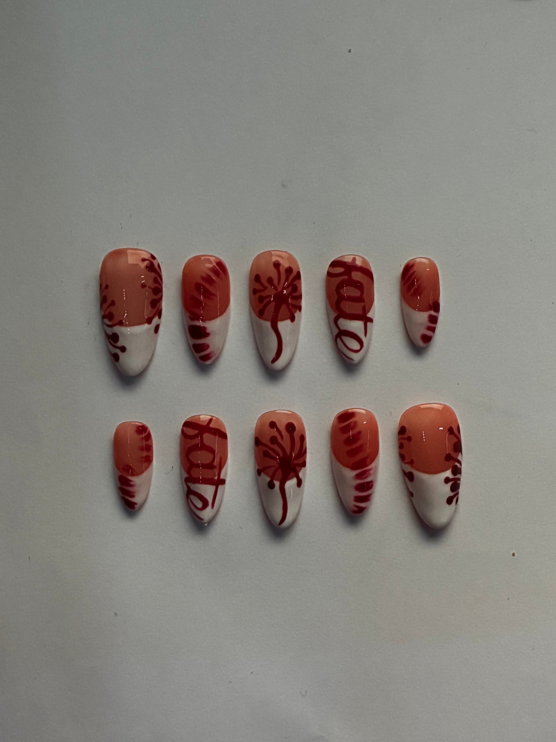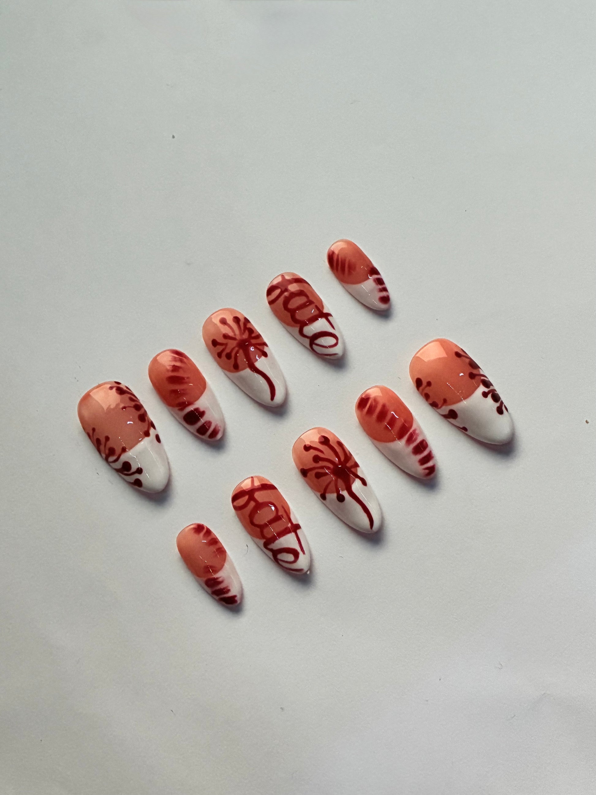 The image is of nail length "Medium almond". Some charms may be sliiightly different on occasion but still keep the same overall aesthetic.