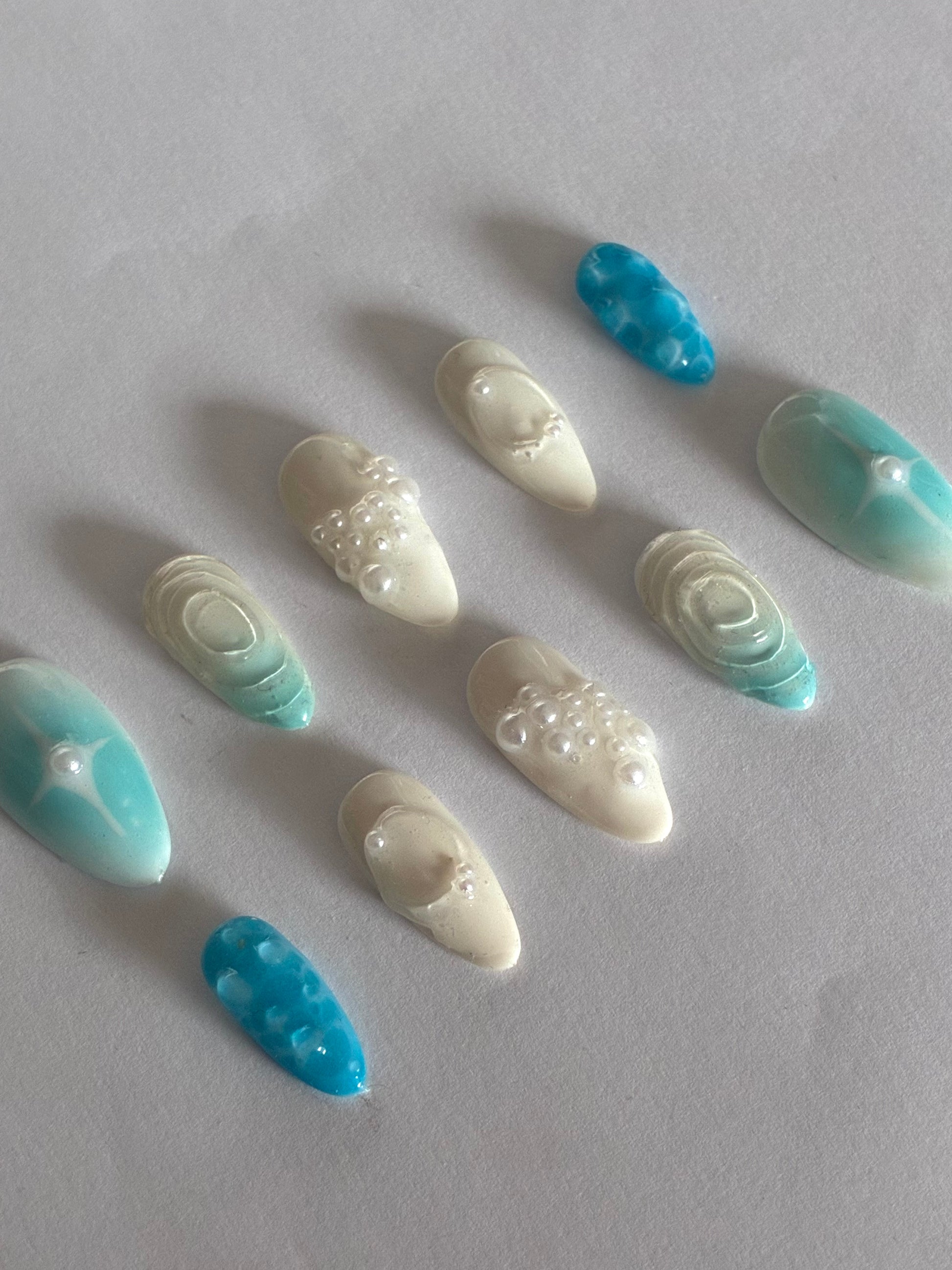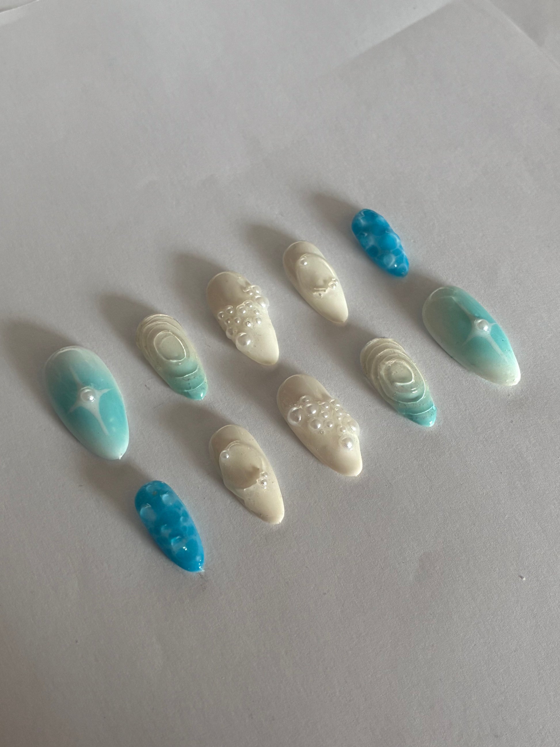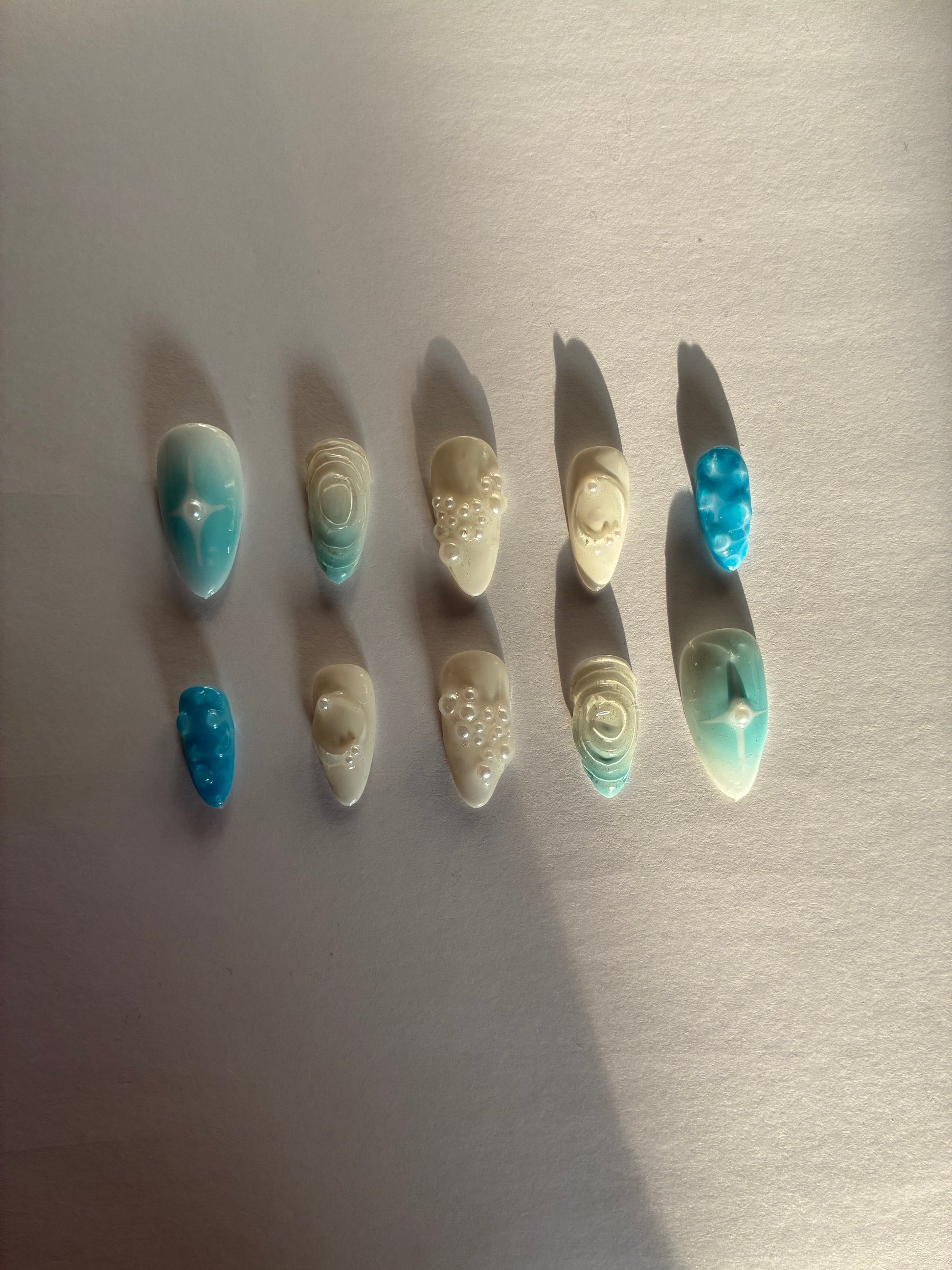 The image is of nail length "Medium Almond". Some charms may be sliiightly different on occasion but still keep the same overall aesthetic.