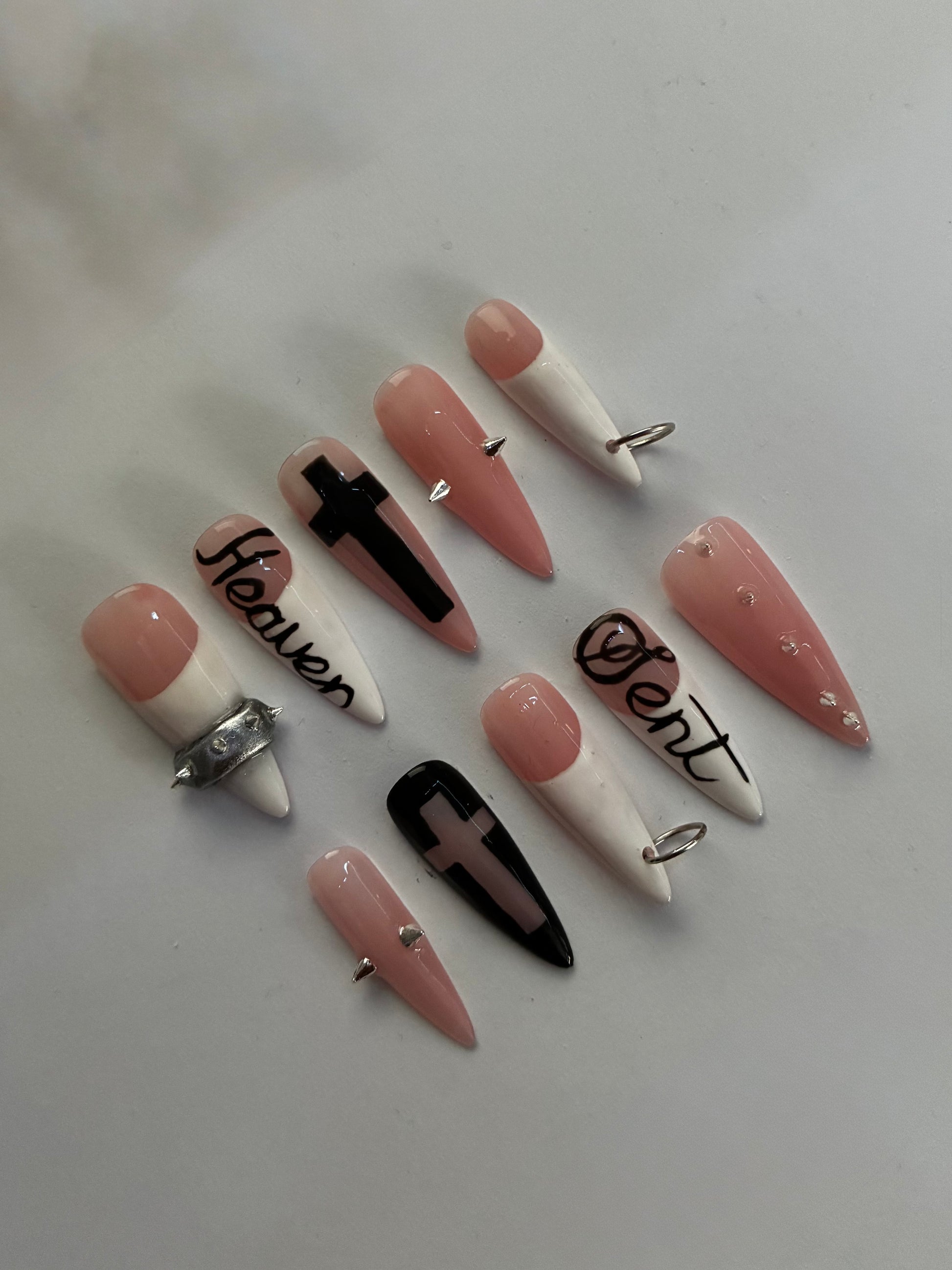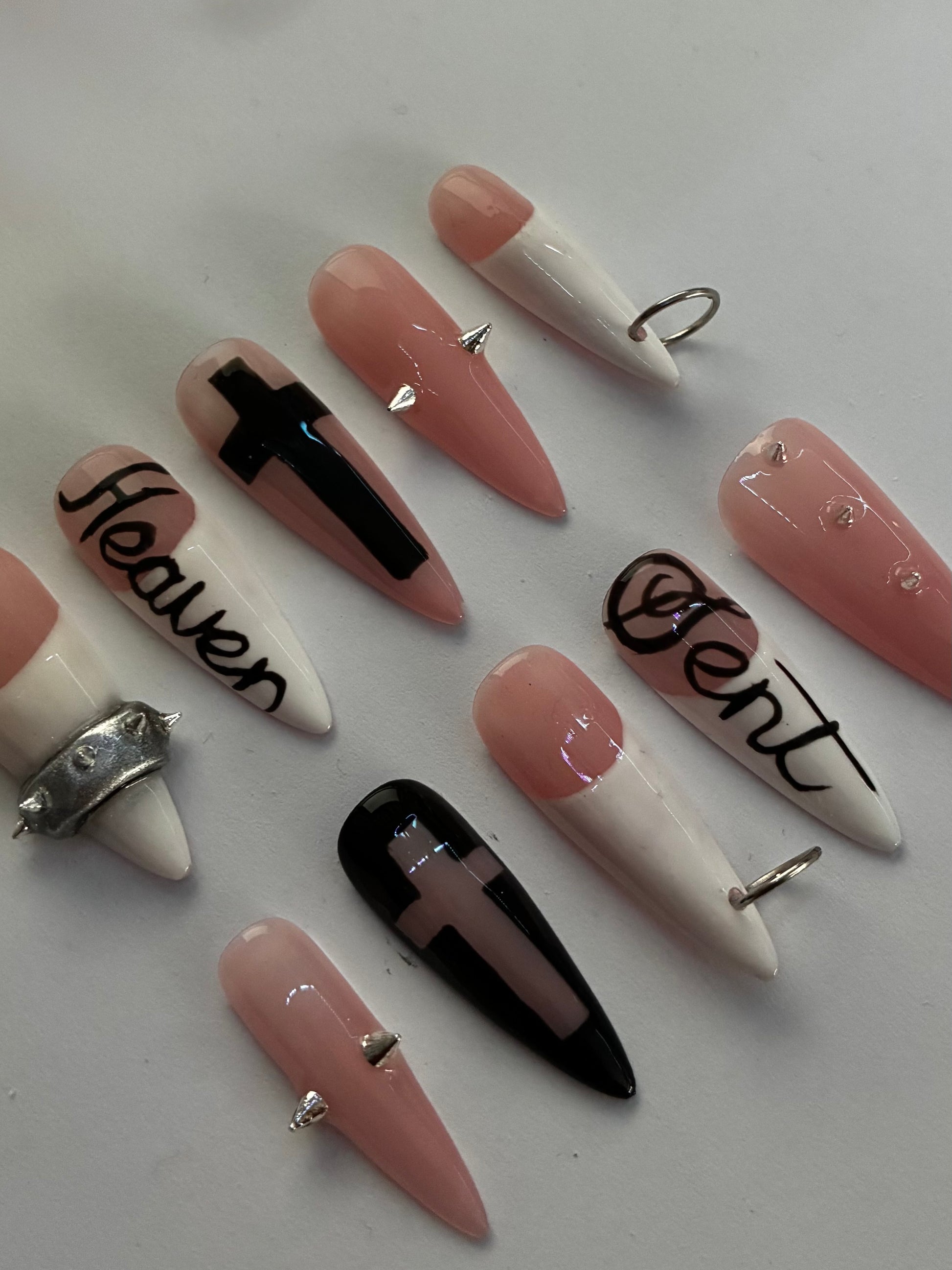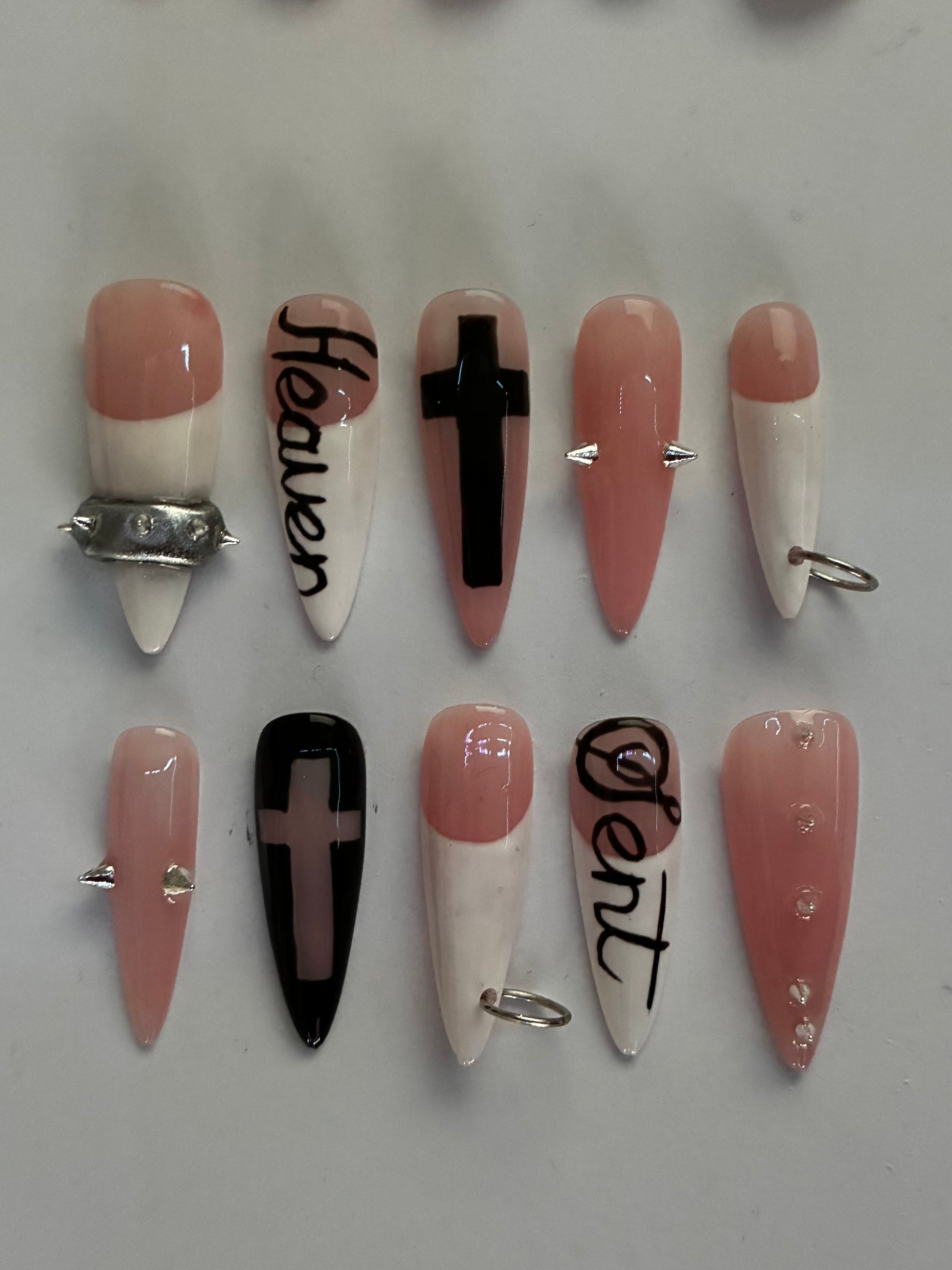 The image is of nail length "Long Stiletto ". Some charms may be sliiightly different on occasion but still keep the same overall aesthetic.